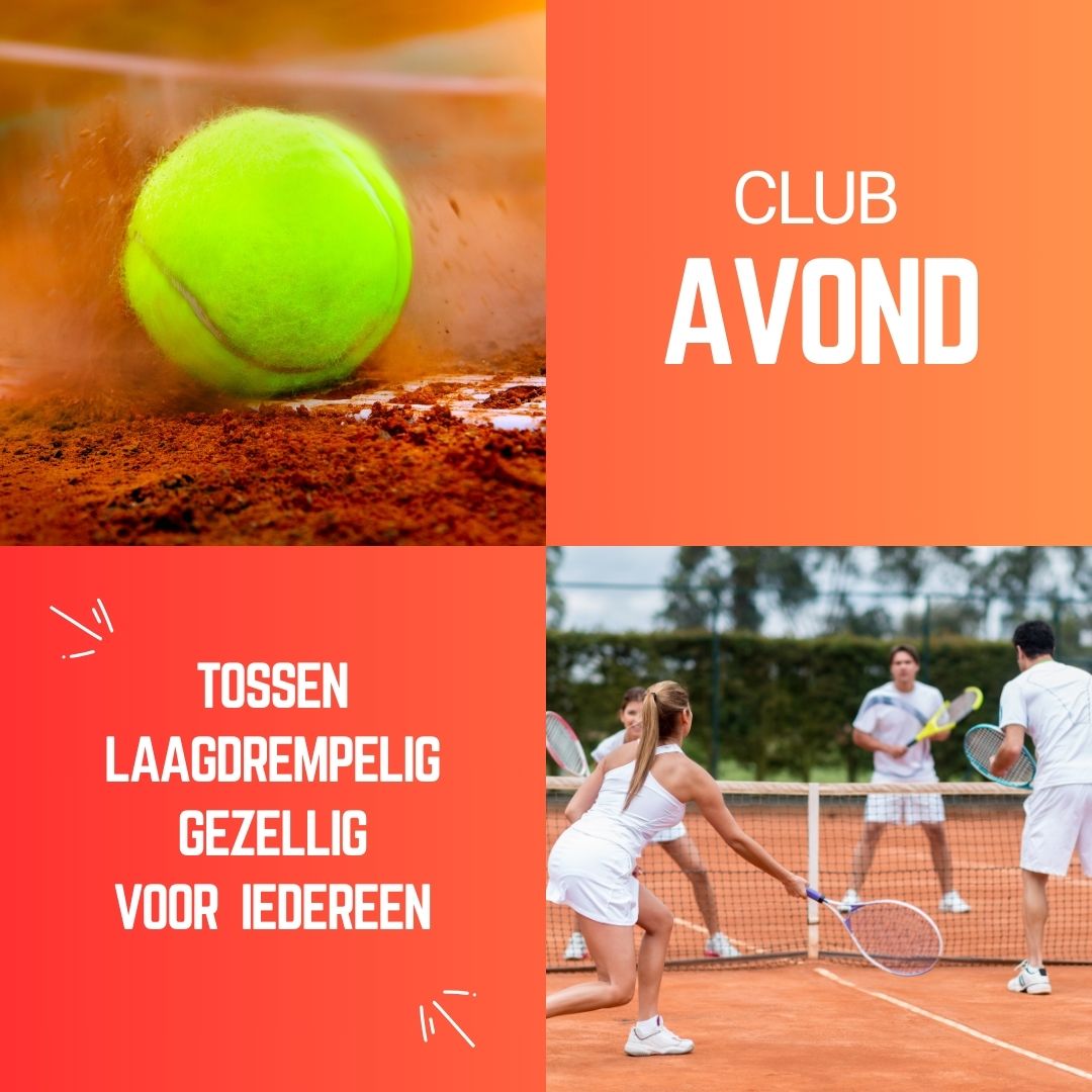 Tijdens het winterseizoen (1 oktober tot 1 april) is er zolang het weer het toelaat iedere dinsdag vanaf 19:00 uur clubavond. Een tossavond voor alle senioren en jeugdleden vanaf het voortgezet onderwijs. Dit is één van de drukst bezochte, bijzonder gezellige activiteiten. Inschrijven of opgeven is niet nodig; je komt en gaat wanneer je zin hebt. Of je nu net nieuw (proef)lid bent of al jaren tennist, kom vooral langs!